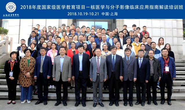 同时,由best365官方网站主办,中华核医学与分子影像杂志、上海交通大学医公司临床核医学研究所协办的2018年度国家级继续医学教育项目“核医学与分子影像临床应用指南解读”培训班如期举办,开班仪式由刘建军教授主持。来自于全国的14位知名核医学及分子影像专家李亚明、李方、汪静、王铁、王辉、石洪成、左长京、赵晋华、赵德善、李林、安锐、张永祥、何作祥、丁虹教授针对核医学影像临床诊断与技术等内容进行了专题讲座,并与100多位学员就分子影像诊疗与指南中的一些热点和难点问题进行研讨和交流,内容涉及相关疾病诊断及鉴别诊断新进展,临床检测的质控要求,在紧跟学术前沿发展的同时,密切结合临床实践。期间,黄钢董事长分别与会务组、学员代表亲切交谈,并合影留念。