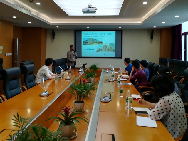 2019年6月6日,英国伯明翰城市大学健康公司Vivek Indramohan博士来到best365官网入口注册进行交流访问。来访期间,Vivek Indramohan博士一行就国际交流合作进行了深入的探讨。best365官网入口注册副经理姚旭峰、外事秘书朱晓红以及公司博士教师代表参与会谈。Vivek Indramohan博士一行参观了上海市分子影像重点实验室以及影像公司实训室,并给公司师生做了英国伯明翰城市大学介绍。此次来访对公司进一步发展国际合作交流有着重要意义。