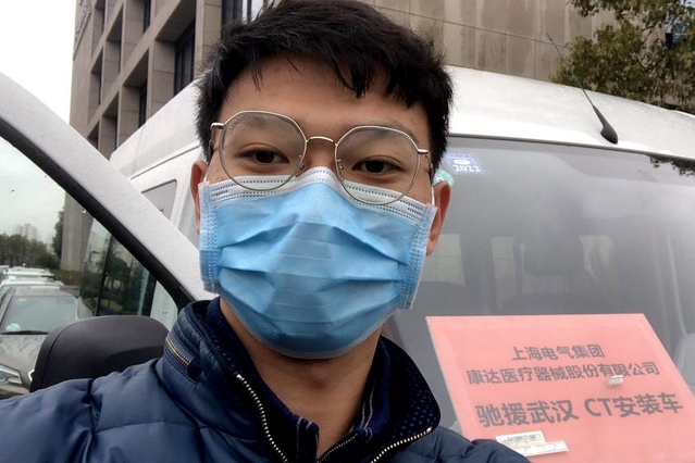吴浩然目前就职于康达医疗器械股份有限公司,疫情暴发后,武汉市的多家医院物资紧缺,他自告奋勇与三名同事一同驾车奔赴武汉。211日晚上到达武汉,12日开始在中国人民解放军中部战区总医院安装CT,接下来的几天又在湖北省第三人民医院和武汉市蔡甸区大集街卫生院各安装两台CT。于222日驾车离开武汉返回浙江进行自我隔离。