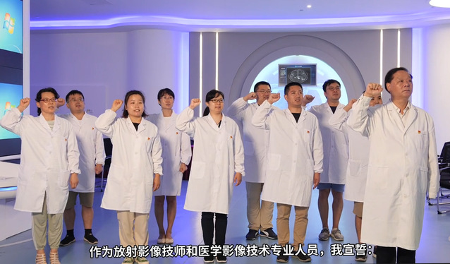 随后,进行入场仪式,播放了本次参赛的31支院校代表队的入场视频。在医学影像技术专业誓词宣誓环节,由资深教授周进祝领誓,“我决心献身医学影像技术事业,大医精诚、待患如亲、全心全意维护受检者权益……”,誓词展现了影像从业者医者仁心的精神。开幕式最后,由中华医学会影像技术分会秘书长马新武作大赛说明。