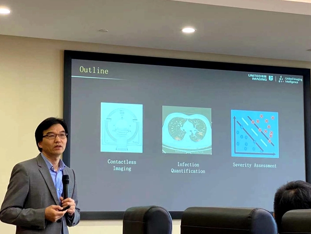在专题报告中,沈教授从图像的自动采集、量化分析、特征识别三个角度重点展示了联影智能医疗在新冠肺炎疫情期间开展的“uAI新冠肺炎医学影像智能化诊断全栈解决方案”项目。他表示AI影像已经在影像技术优化、设备赋能、临床定量分析达到了长足进步,正朝着更快、更好、更安全、更经济的方向发展。报告全面阐述了人工智能与影像技术及设备的深度融合,并多角度展示了联影智能医疗在此次新冠肺炎疫情中的研究成果。