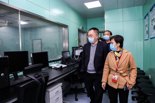专家组成员在公司一行陪同下首先走访了智健影像互动中心,随后逐一查看了CT实训室、DR实训室、超声实训室等。专家通过详细听取实验室功能介绍,询问实验内容和安排,翻阅《实验室使用记录》,检查实验室布置和实验中心文化建设等,全面了解医学影像实验中心教学科研和建设情况。