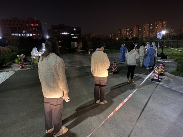 3月15日、16日连续两天晚上,公司对南苑9号楼全体人员进行单人单管鼻拭子核酸检测,当得知检测工作需要志愿者时,楼长王舒心同学第一时间忙碌了起来,她积极协调、组织层长参与核酸检测工作,协助宿管组织好各楼层同学有序下楼参加检测,担任起联络员的角色。夏琳同学、娄怡妃同学、张佳丽同学三位层长主动报名,有效充实检测现场的工作力量,她们穿上防护服、戴上防护面罩,维持现场秩序,引导同学扫描二维码,使得检测工作有条不紊,现场秩序井然,核酸采样工作顺利完成。经过两天晚上的工作,尽管非常劳累,但她们依然积极乐观,精神饱满,她们说:“高考那年,当我们看到如此多的医护人员削发出征时,内心满是感动,也立下了从事医学工作的心愿。当得知需要志愿者时,踏上一线的勇气随之而来,能够参加公司的核酸检测工作,贡献自己的绵薄之力,深感荣幸。新冠无情,可我们从不胆怯。”