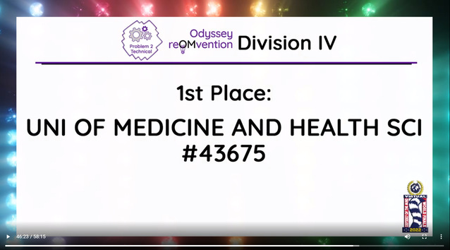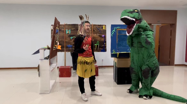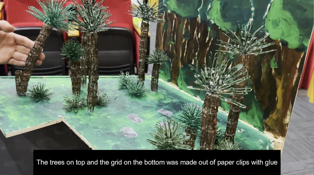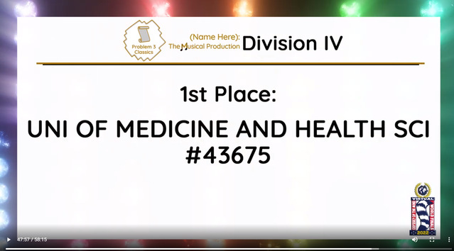 3月突如其来的疫情封控,打乱了队员们备赛2022OM线上世界赛的节奏。在面临严峻的疫情挑战时,作为医员工,大多参赛队员都义不容辞地奔赴抗疫一线,参加防疫志愿者工作,有的担任抗原检测志愿者,有的管理核酸检测秩序等。在完成志愿者工作之余,队员们积极备战世界决赛,利用碎片时间进行了多次线上讨论剧本道具、交流解题思路并修改方案。例如,在工程类赛题中,为了节约时间和控制成本,队员们省去体积较大的道具设计,巧妙地设计了一个主舞台和一个微观舞台,并将评分点中回形针的使用运用在微观舞台的搭建上,用回形针制作成不同的景观,以此达到不同景别之间的来回转换,调动观众的视觉感官。比赛过程中,队员们展现了极强的创造力、表现力和团队协作能力,最终富有创意的参赛作品获得了裁判们的一致好评。今年的古典类赛题与以往不同,主题是音乐剧,因此除了道具和剧本的完善,音乐风格也是相当重要的一个部分。参赛队创新采用翻转背景板的方式,在背景板的正反两面都做了设计,其中利用麻绳围成高脚杯、碗、帽子以及展览柜里的展览灯等立体物品道具,贴合音乐剧中原始部落的“原始感”,在国际赛中受到评委的好评。